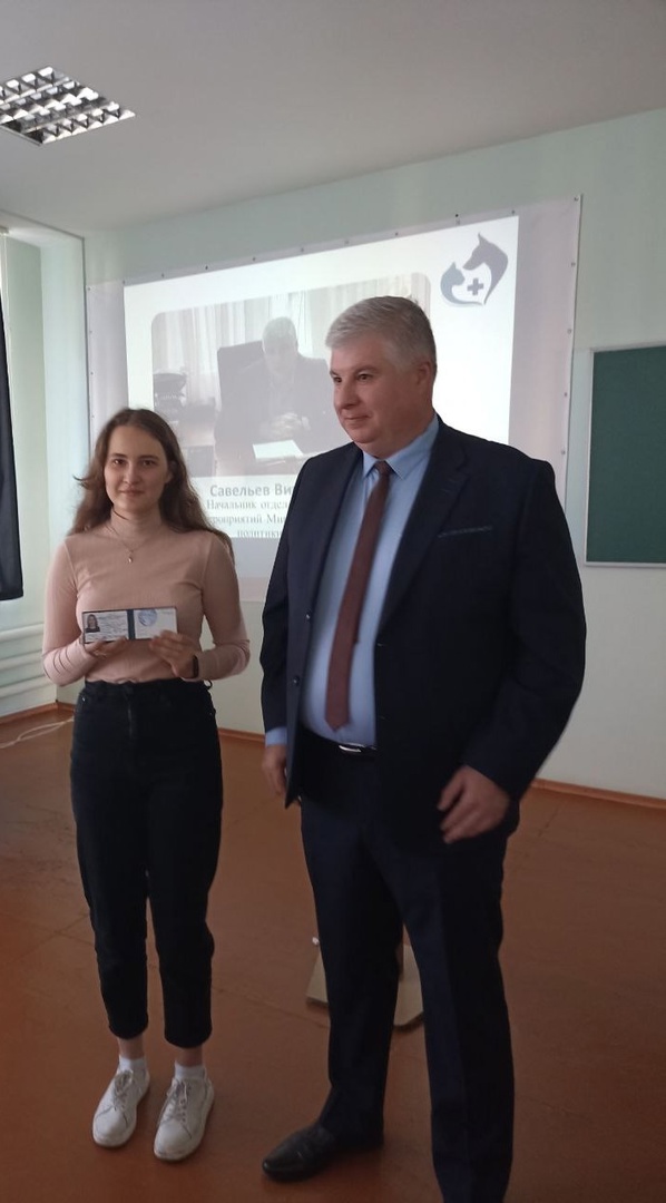В преддверии Дня работника сельского хозяйства и перерабатывающей промышленности с первокурсниками факультета ветеринарной медицины и зоотехнии ДОНАГРА встретился начальник отдела организации ветеринарных мероприятий Министерства агропромышленной политики и продовольствия ДНР Виталий Николаевич Савельев.