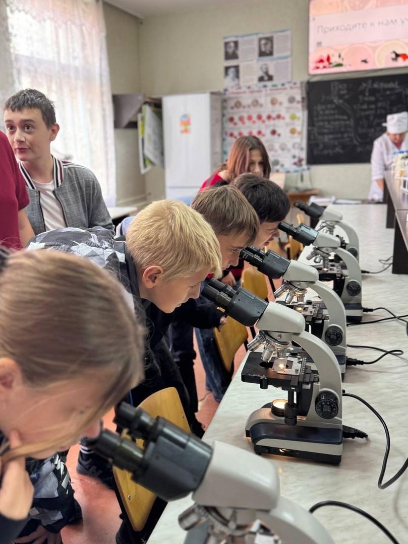 В учебно-научной лаборатории микробиологии, микологи и вирусологии школьники много узнали о болезнетворных микробах, поработали с микроскопами.