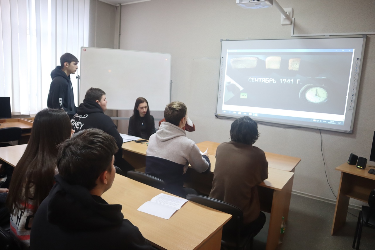 С помощью кадров документальной хроники участники вспомнили о трудностях, которые пережили жители осаждённого города, каким был «блокадный хлеб» и представили «дорогу жизни» – единственную спасительную связь с внешним миром.