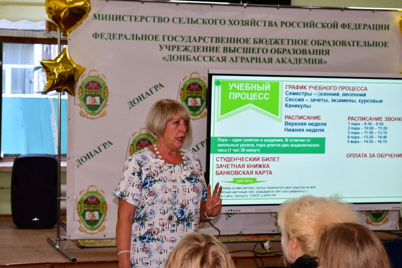 В Донбасской агарной академии прошли организационные собрания для первокурсников. Мероприятие было посвящено началу учебного года и правилам организации образовательного процесса. Перед студентами выступили представители администрации вуза, деканы факультетов, сотрудники бухгалтерской службы и профкома ДОНАГРА.